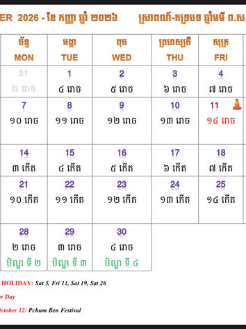 Welcome to visit the Calendar. This is a Khmer calendar that also cover Buddhist holiday. Please feel free to get this by download the pdf file.